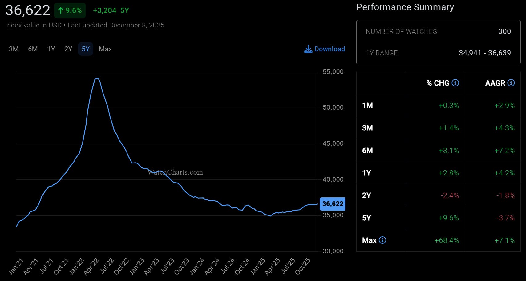 📊 Luxury Watch Index (Top Brands) 5-Year Liquidity Cycle