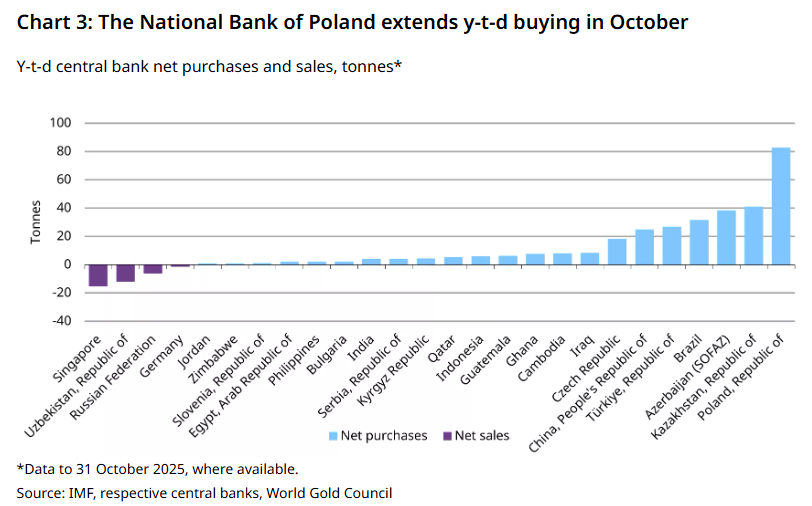 📊 YTD Net Central Bank Gold Purchases by Country (to Oct 2025)